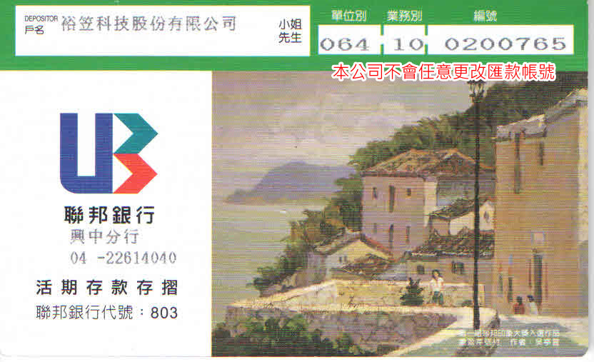 台灣本地付款NTD$帳號(本公司不會隨意更改任何匯款資料)