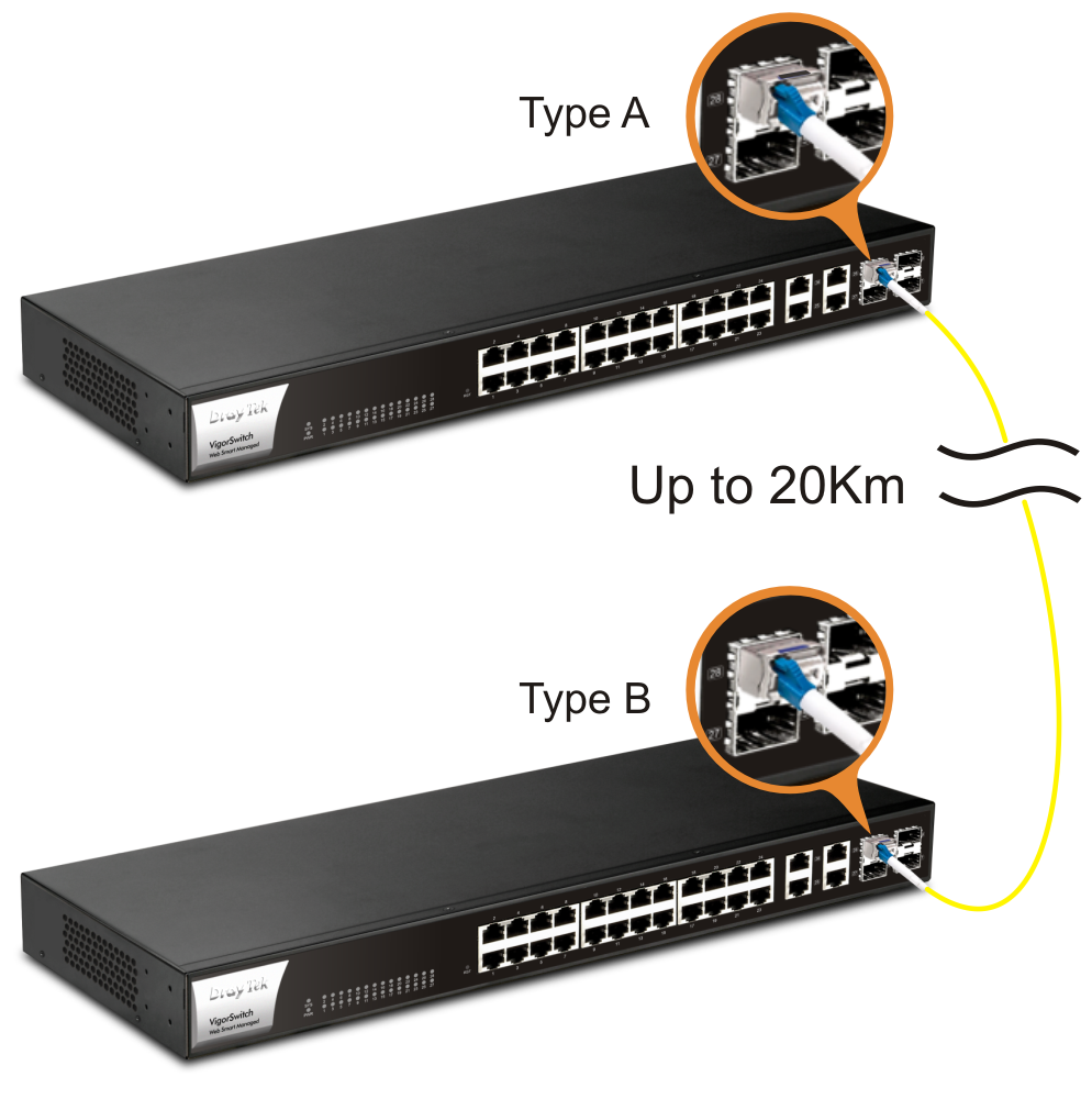 Type A : TX1270nm / RX1330nm Type B : TX1330nm / RX1270nm |
