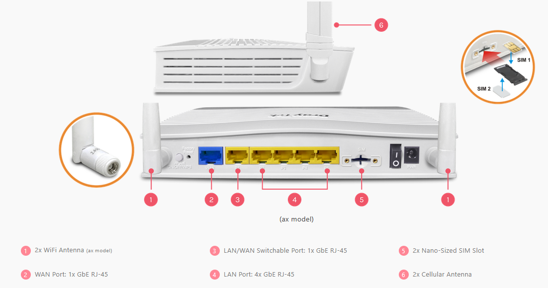 | Antenna Spec | 2 x DB External Dipole + 1 x 5GHz Internal PIFA | |