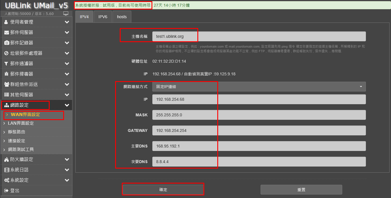 管理介面設定三個步驟就完成了