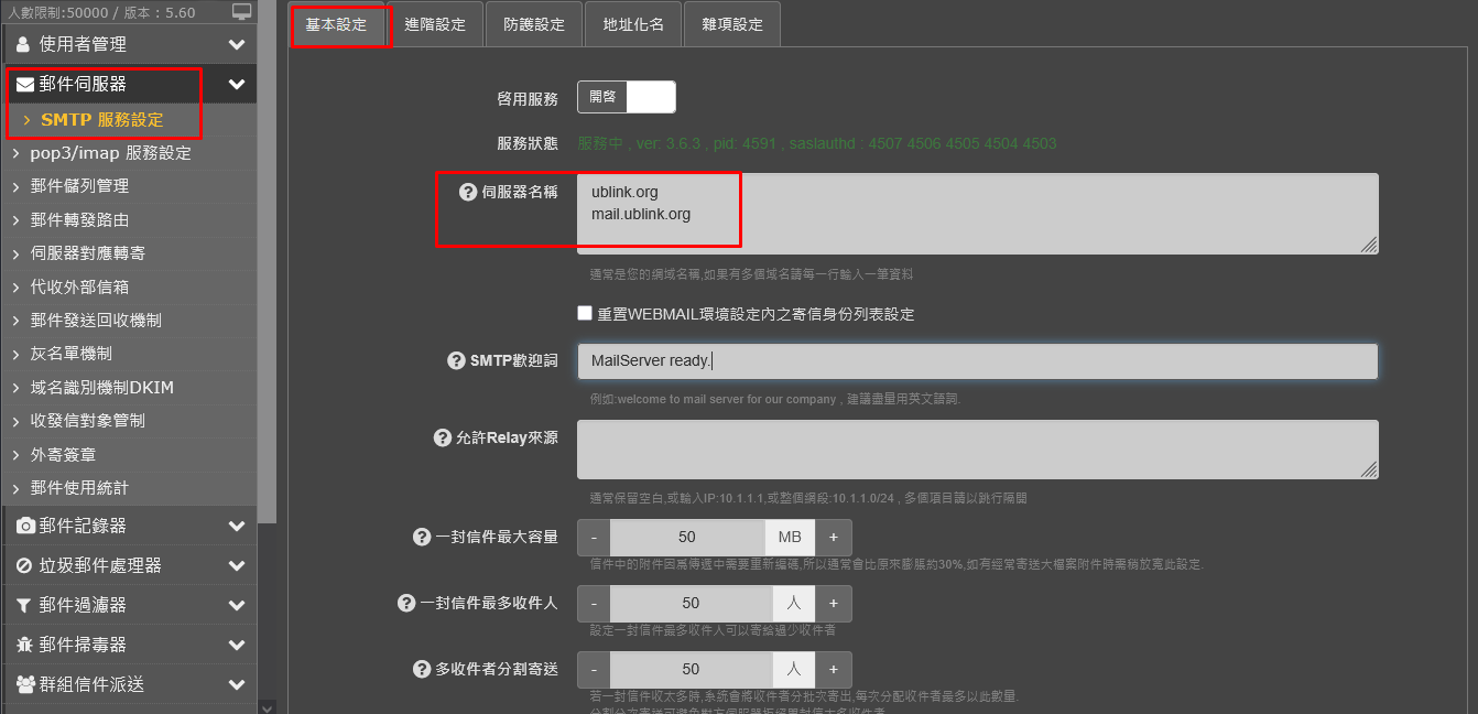 SMTP服務設定