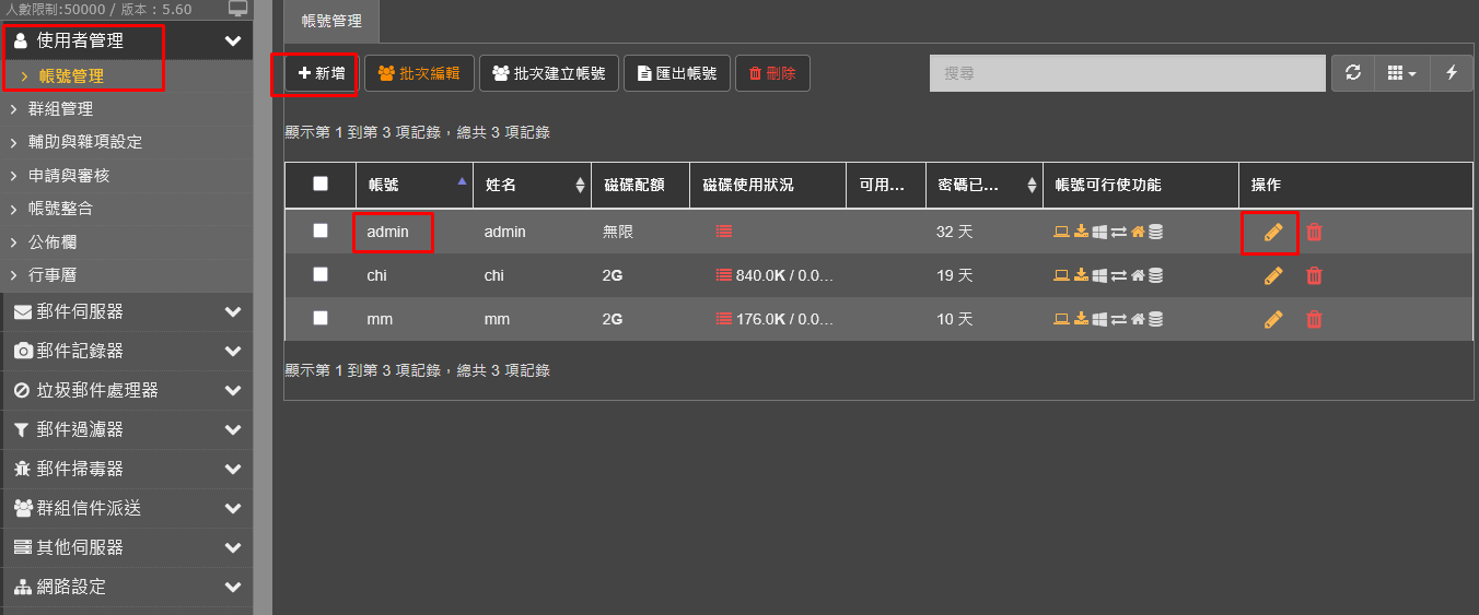 再來就可以使用者管理