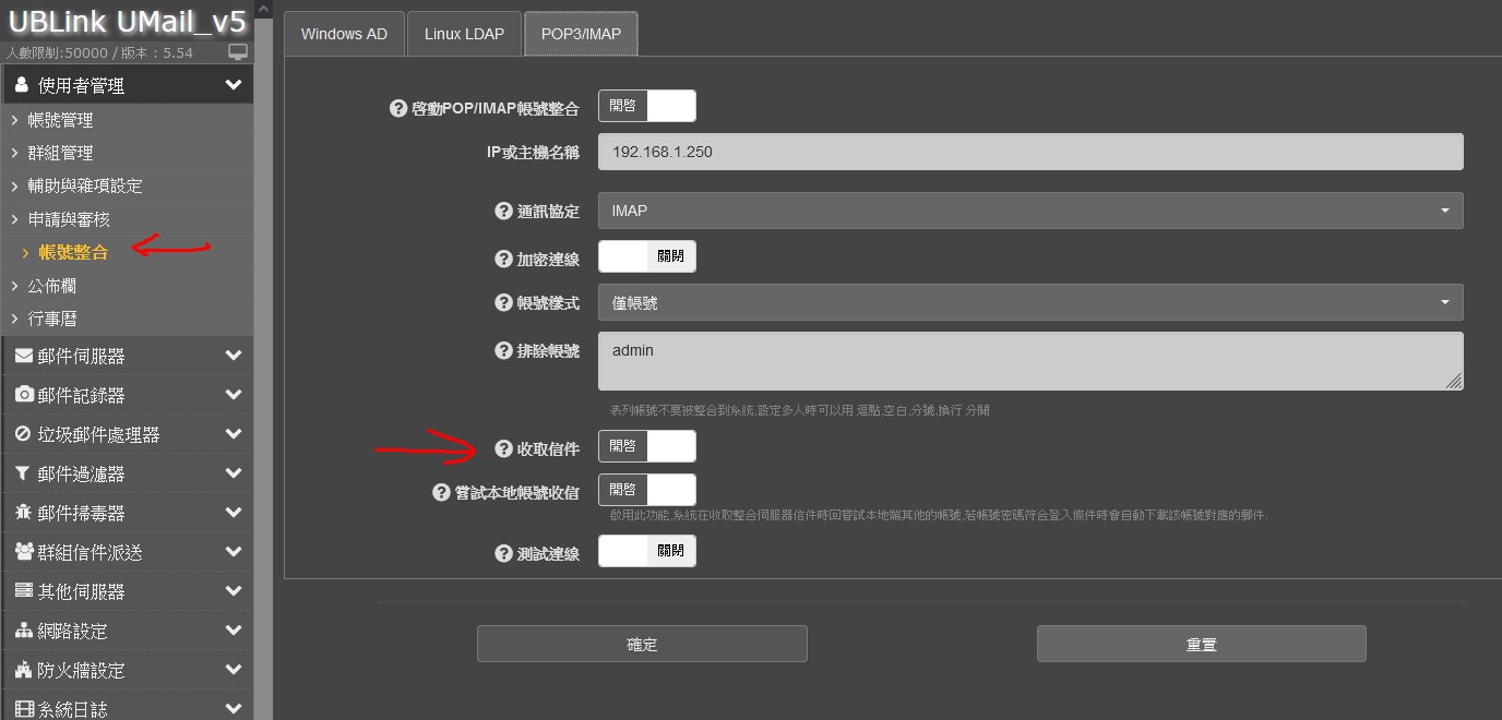新的UMail 伺服器去學習舊的郵件Mail Server POP IMAP 設定方式包含收取信件