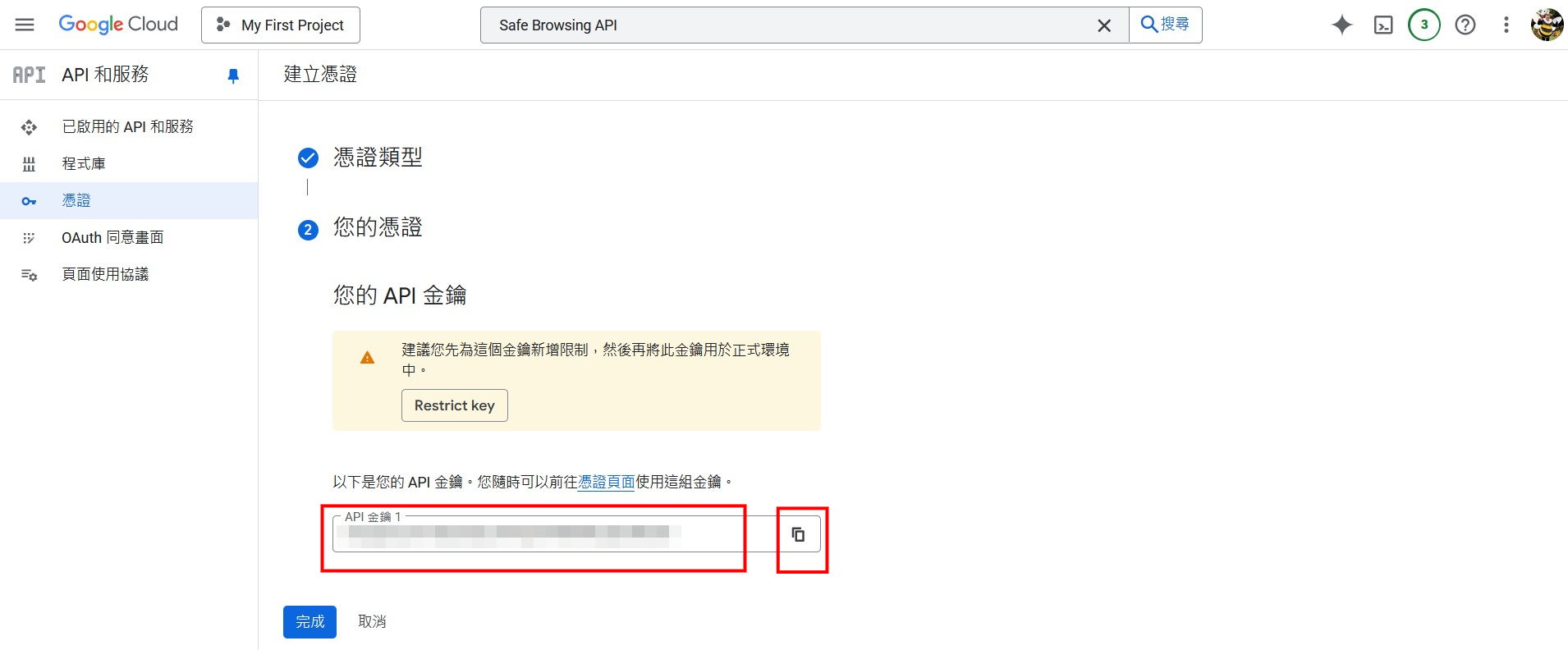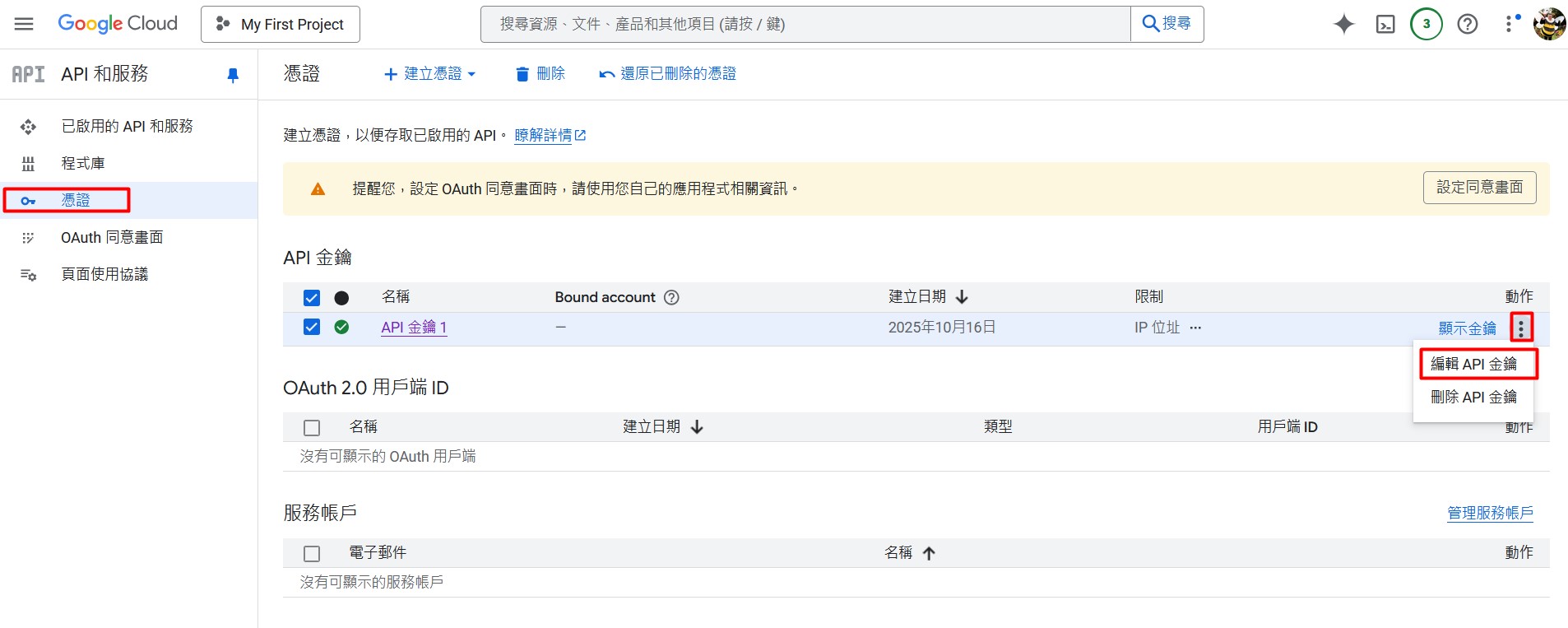 API金鑰 這邊會出現黃色的驚嘆號 !