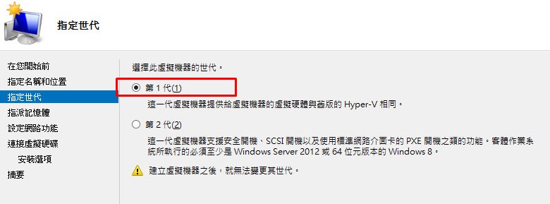 Hyper-V gen1 只能選第1代(1)虛擬機