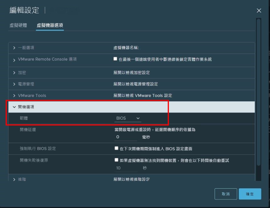 ps:esxi 7 cd-rom使用預設的ide會讀不到iso 開機選項從efi改成bios 試試 (感謝彰藝科技Andy提供畫面)