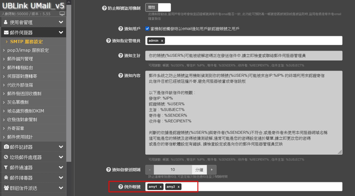 例外帳號要避開這兩個帳號
