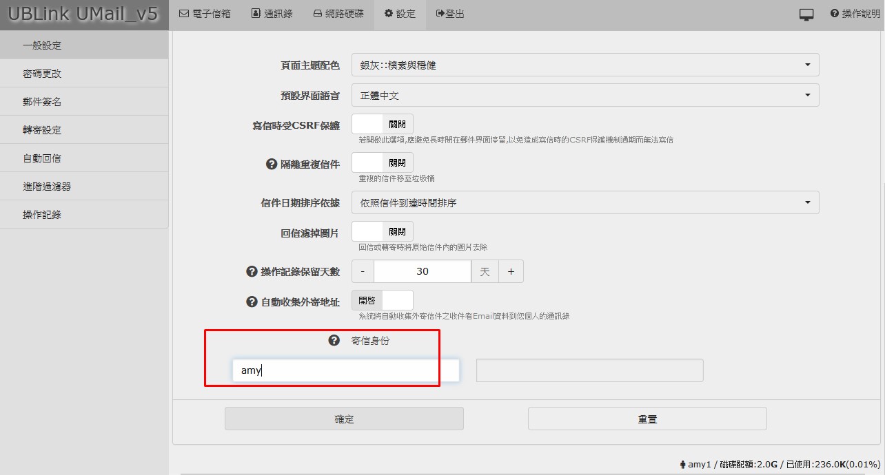 例如 在寄件者地址設定 :