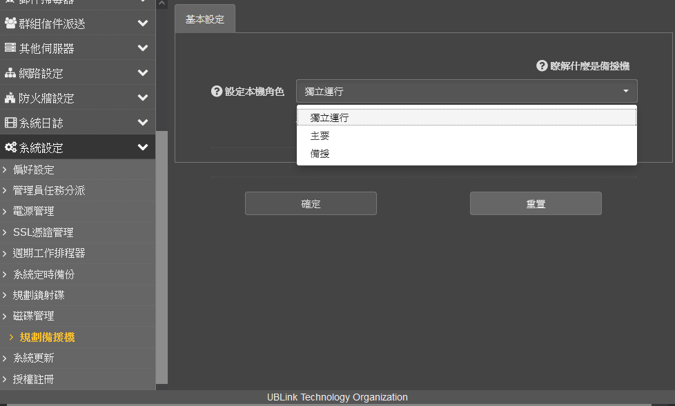 還可以新增一台 UBLink Mail 區分 主要 和 備援 (備援機要買授權,可以大備小)