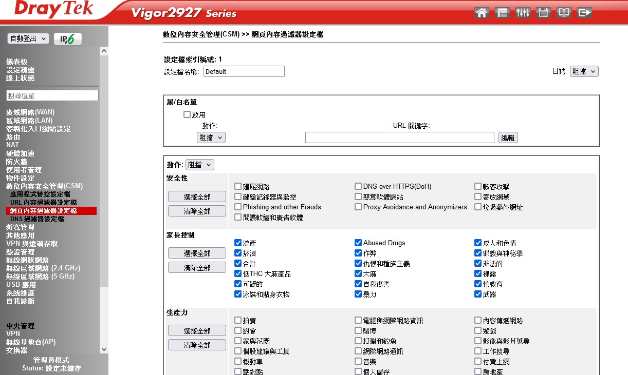 數位內容安全管理(CSM) >> 網頁內容過濾器設定檔