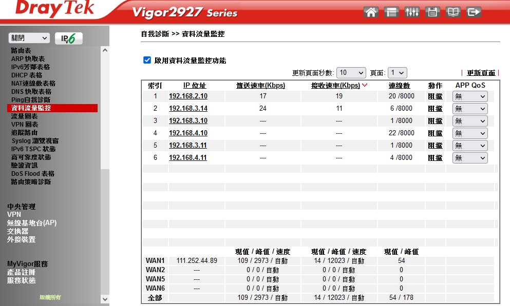 使用Vigor Router快速找出前十大流量使用者排行
