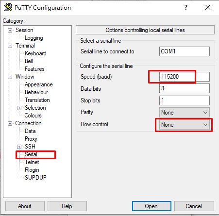 準備好 putty 接收 console log