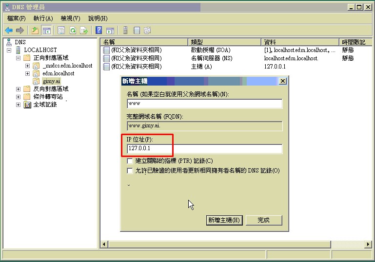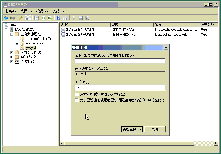 使用Windows 2003 Server 把DNS Server功能裝起來