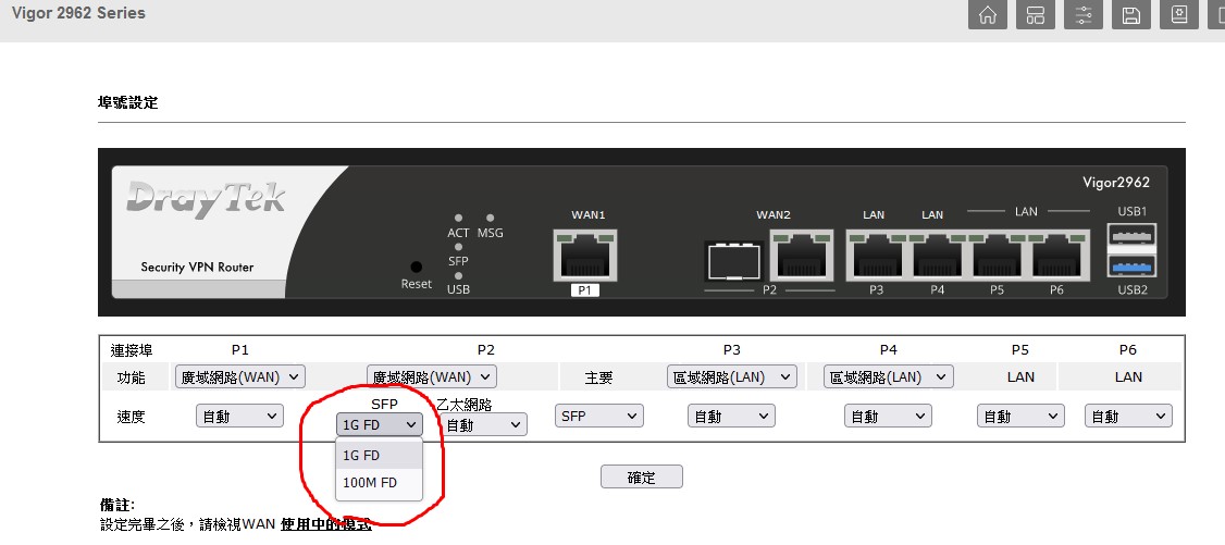Vigor2962 SFP 調整速度