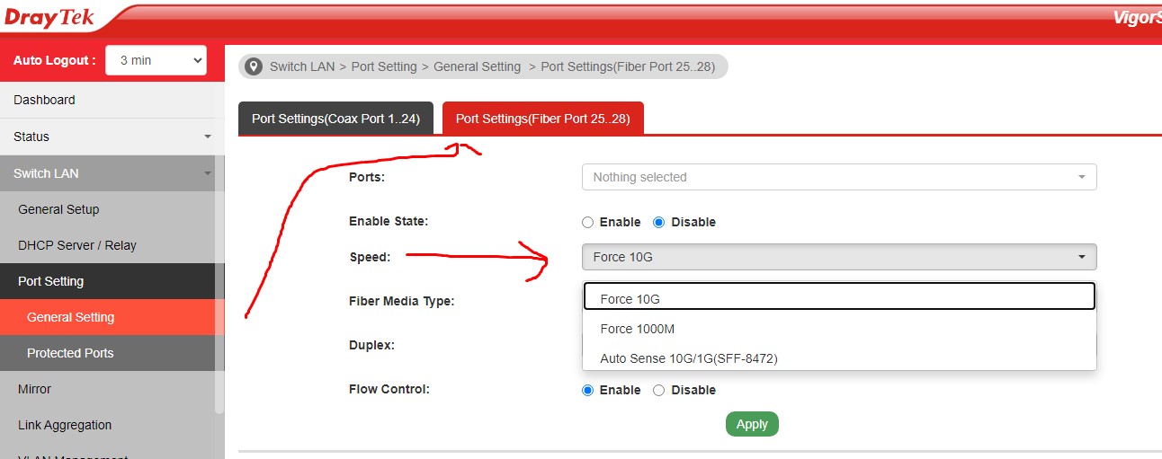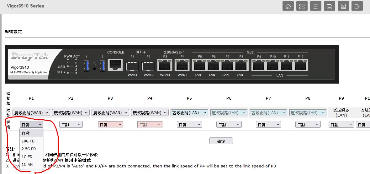 Vigor3910 SFP+ 調整速度