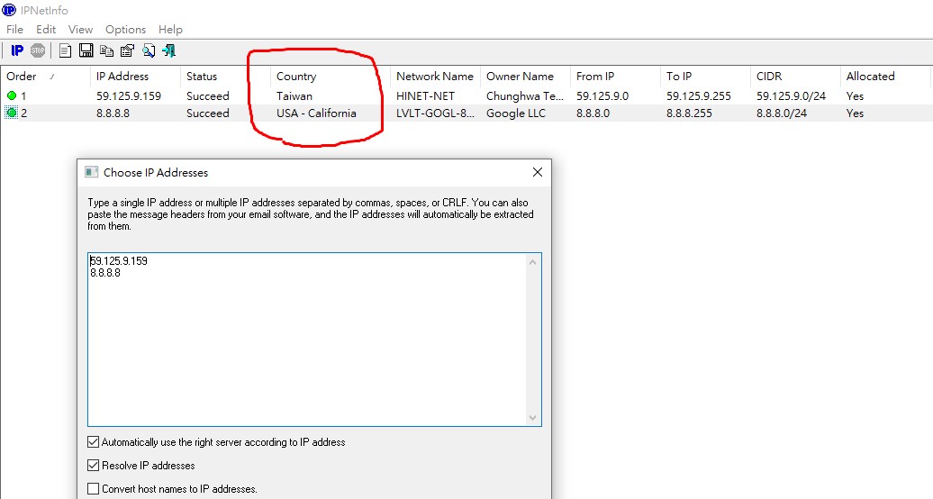 IPNetInfo 可以看出 GEOIP Country 很方便