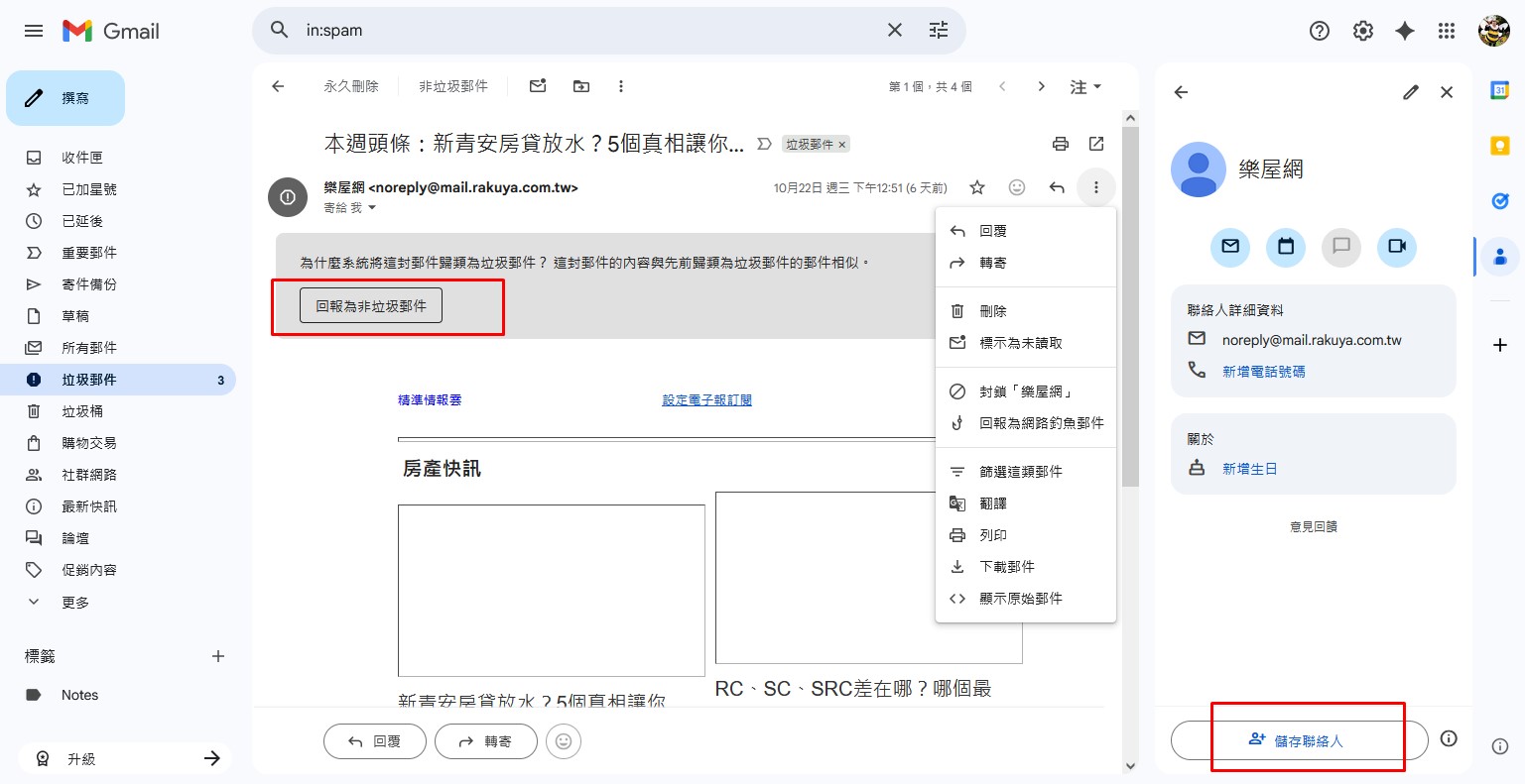 回報為非垃圾郵件