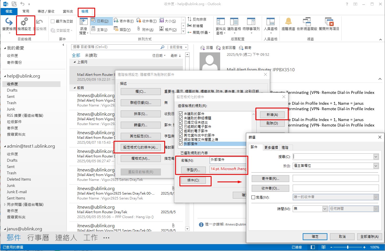 傳統 Windows 版 Outlook 中的條件式格式設定