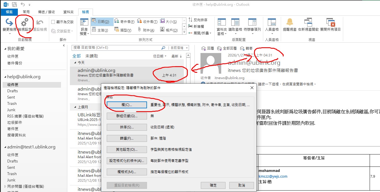上一篇文章: Outlook 和 live mail 如何顯示隱藏的 UMail IMAP 預設的寄件備份資料夾