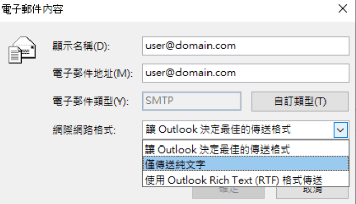 在 Outlook 中將郵件格式變更為 HTML、RTF 格式或純文字