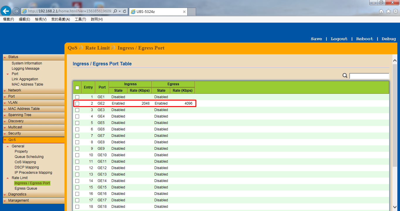 UBS-5324z 頻寬管理 QoS Bandwidth Rate Limit
