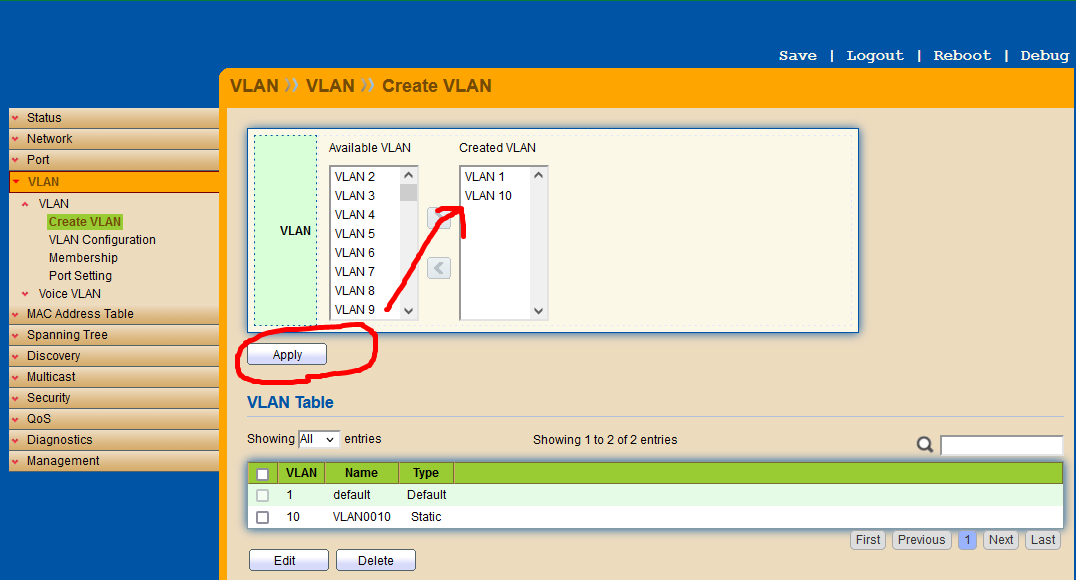 Creact VLAN