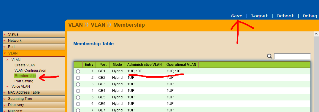 VLAN Configuration Table