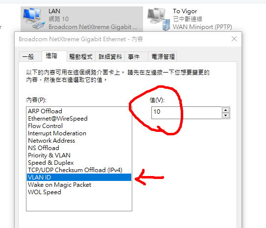 電腦的網路卡更改VLAN ID