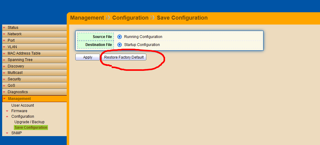 Restore Factory Default