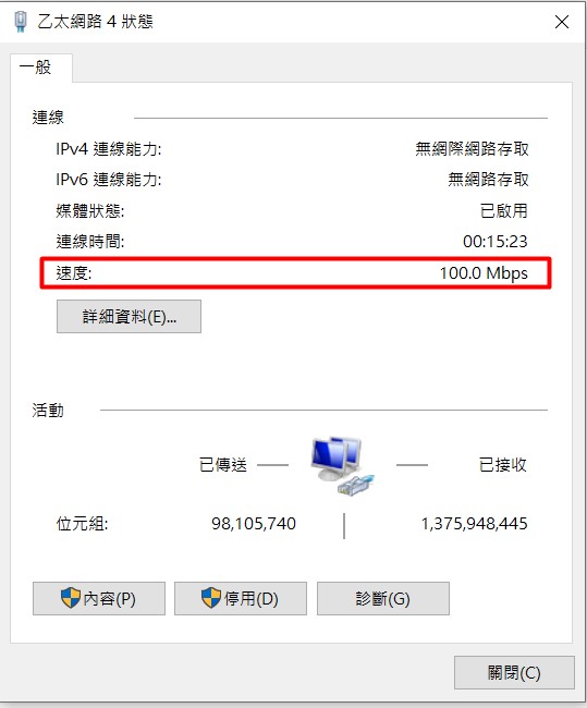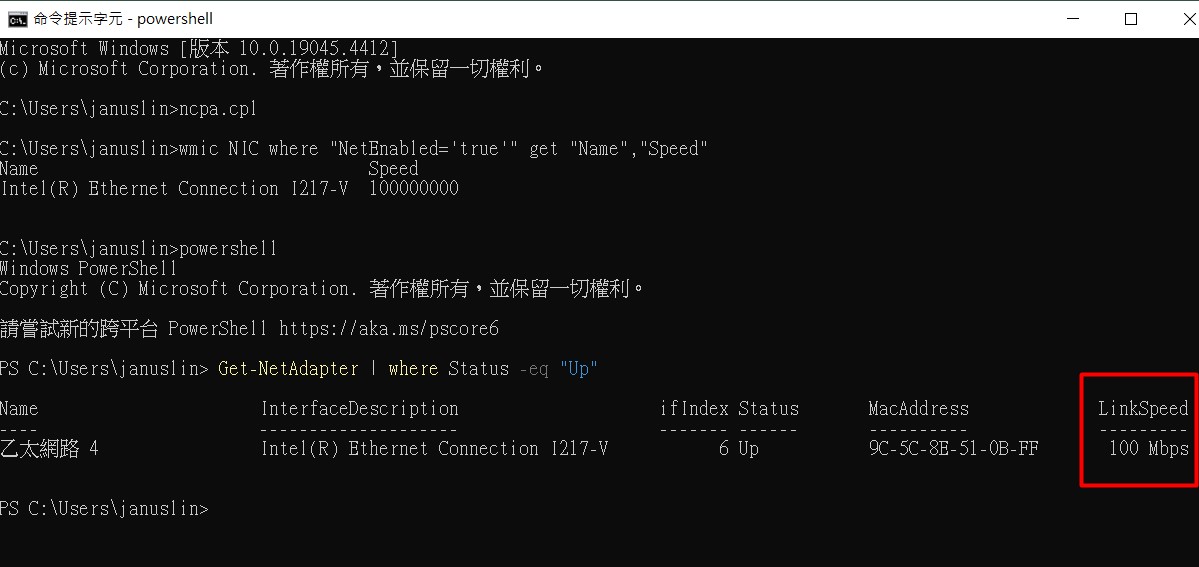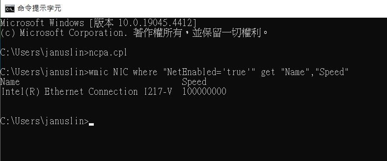 wmic NIC where "NetEnabled='true'" get "Name","Speed"