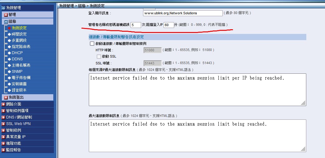資訊安全 admin 管理者名稱或密碼連續錯誤幾次,阻擋登入IP 分 (範圍: 0 - 999, 0 : 代表不阻擋 )