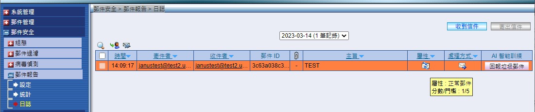 MLS 郵件安全 > 郵件報告 > 日誌