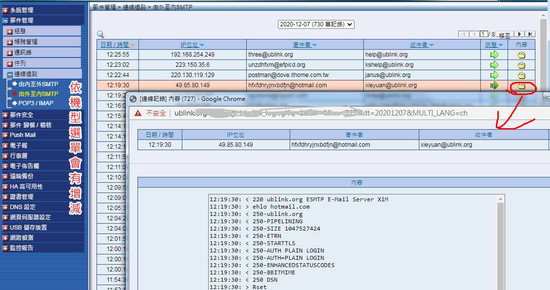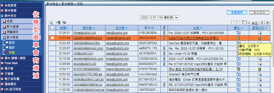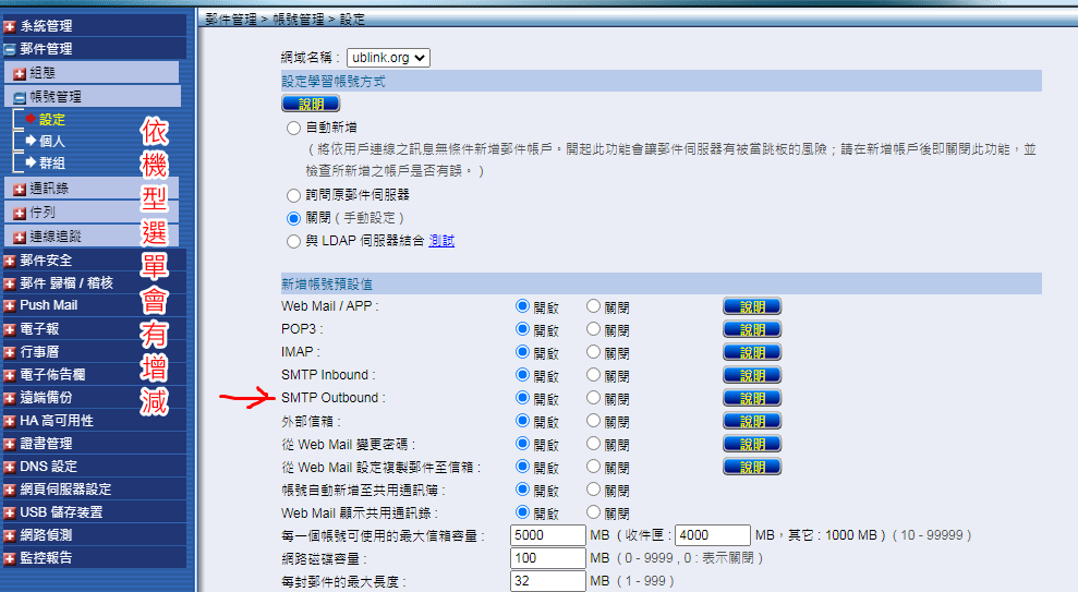 各 Domain 可以不同使用者收件 a@abc 可以不等於 a@cde