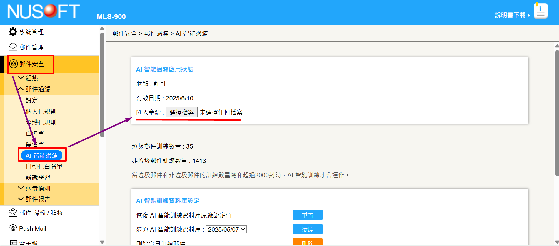 MLS 匯入 防毒軟體 AI過濾軟體 授權 金鑰