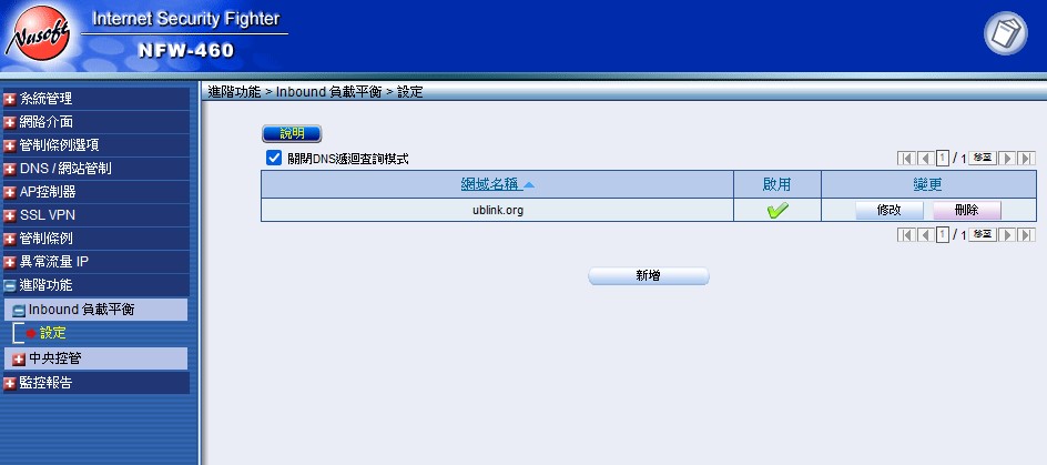 1. 增加“Inbound負載平衡”可支援的網域名稱。