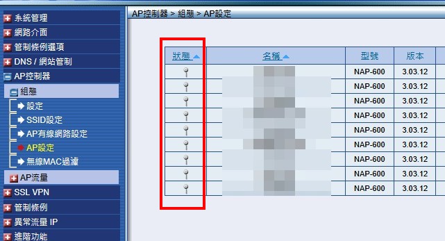 登入 NAP-600 管理畫面