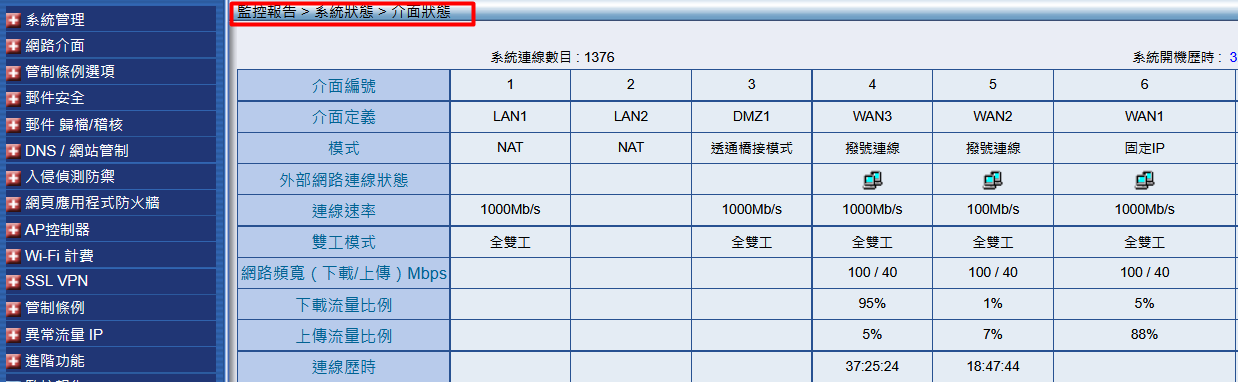 監控報告 > 系統狀態 > 介面狀態