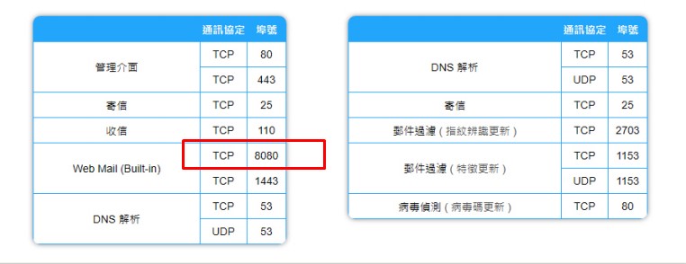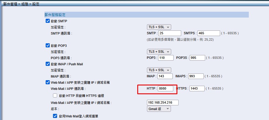 請修改 web mail port