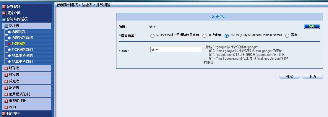 方法是靠外部網路 FQDN 關鍵字 gimy 就可以了