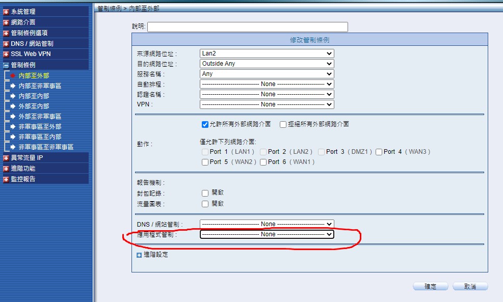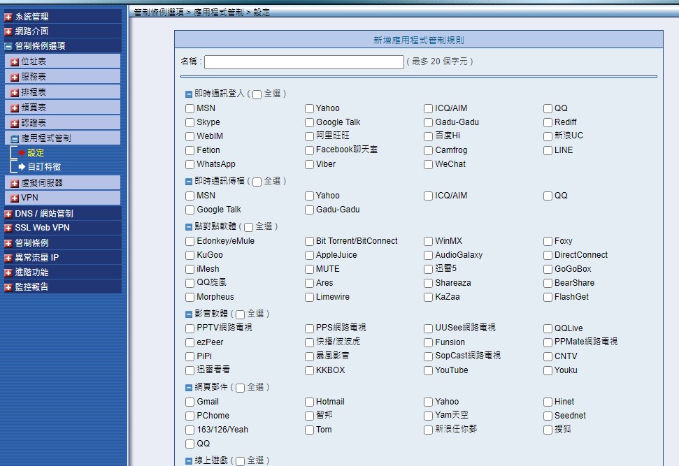 NUSOFT MHG NFW UTM 依 應用程式管制 限制 內部 ip 由哪一個 WAN 出去