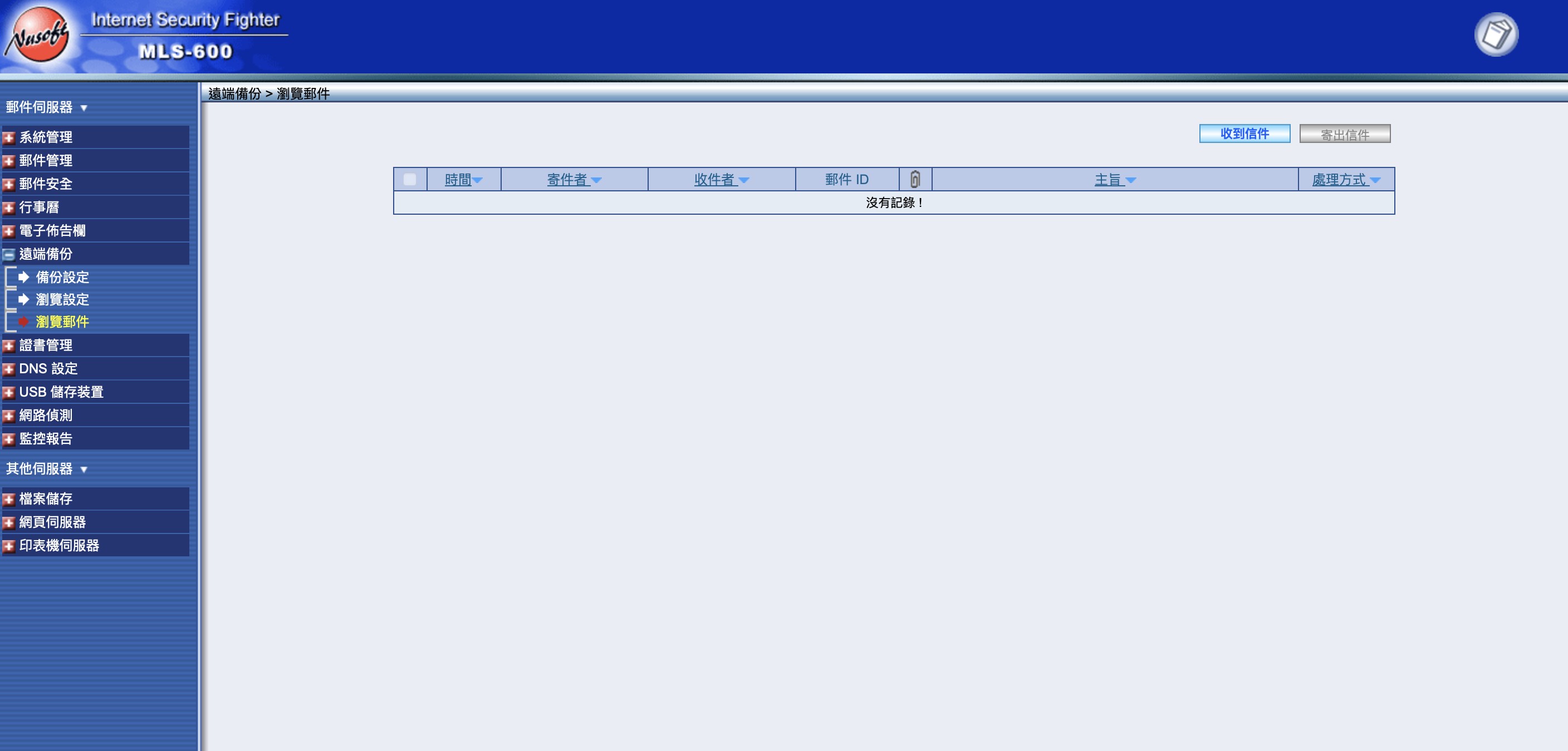 NUSOFT MLS 遠端備份 瀏覽郵件 0筆 沒有紀錄