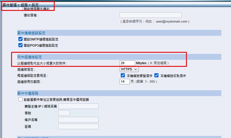 以超連結取代此大小或更大的附件 : Mbytes ( 0: 寄送檔案 )