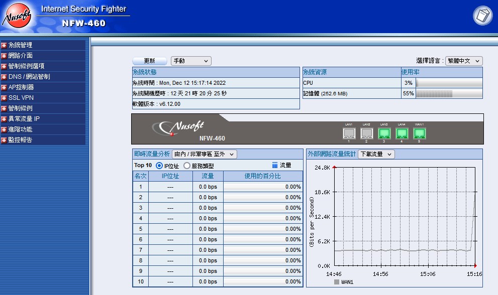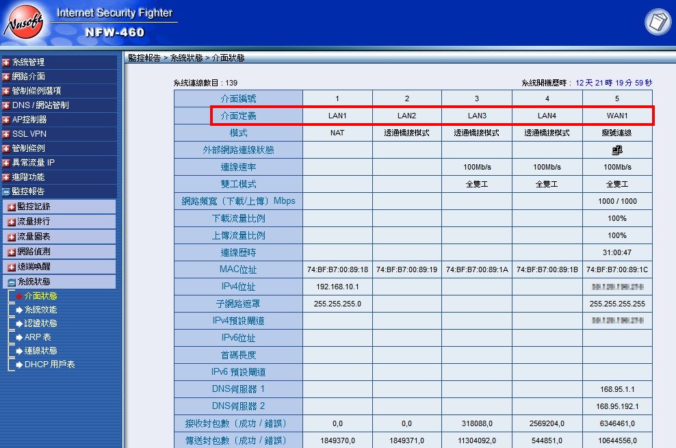 NFW-460 最大的彈性是在每個 port 都可以自訂義 WAN LAN DMZ