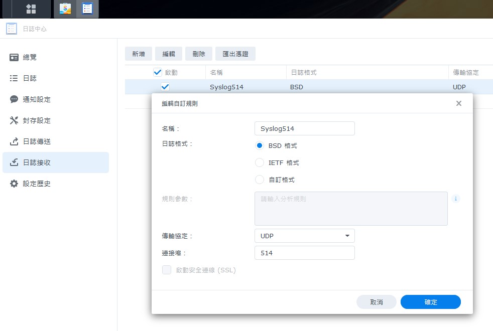 使用Synology NAS日誌中心接收UMail v5 系統日誌 日誌接收器