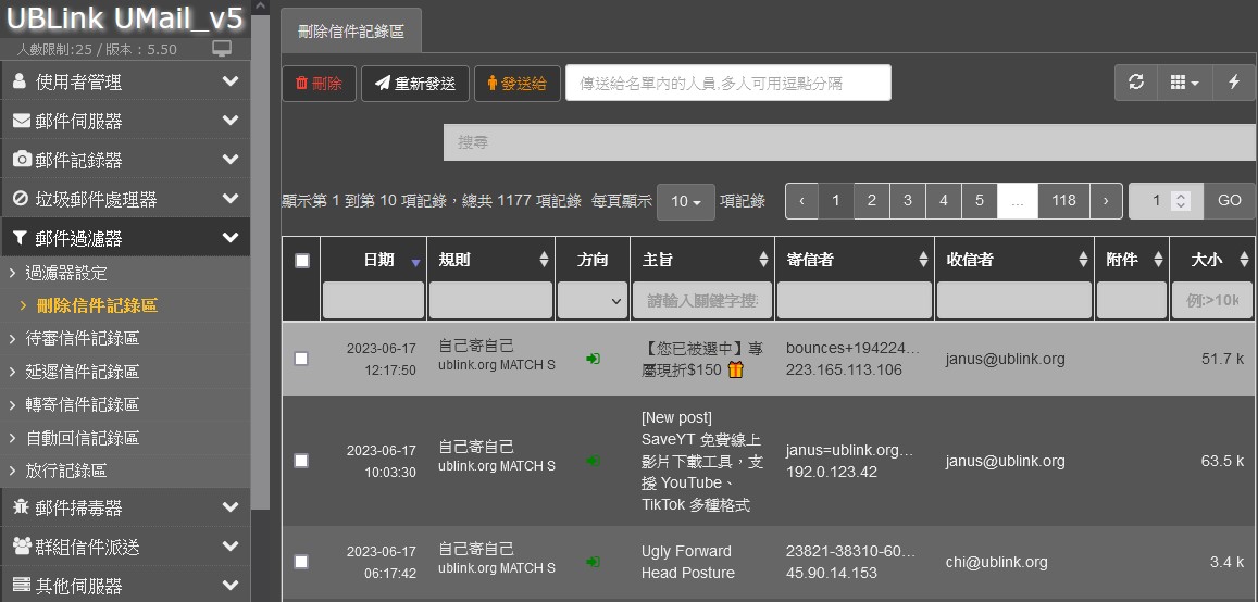 下一篇文章: 請問UBLINK UMail v5 磁碟滿了要如何處理? v3轉v5 maillog超大
