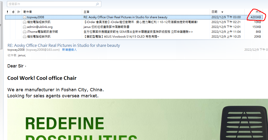 結果發現該 Mail 已經是 4.x KB 大小了