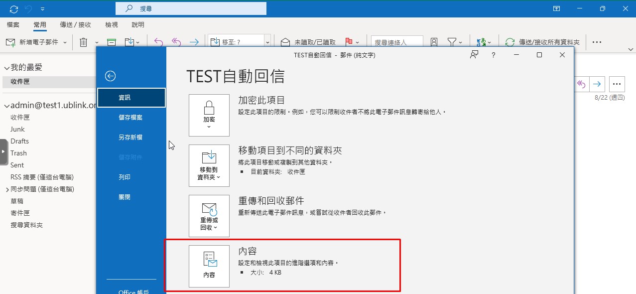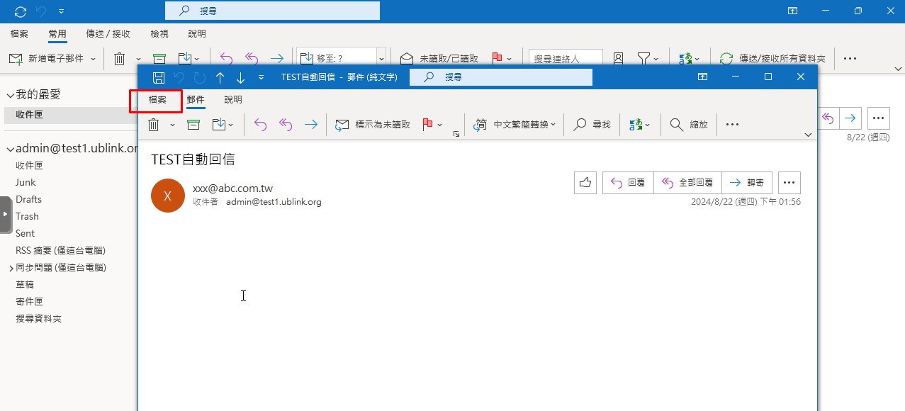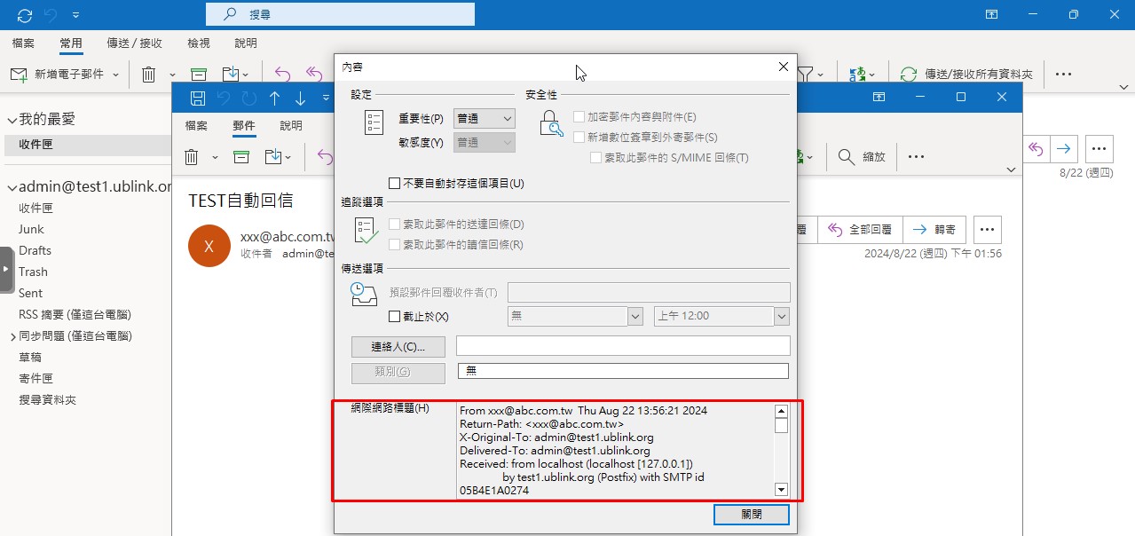 下一篇文章: Outlook 2024 UMail 設定方式 ,如何看見郵件表頭(網際網路標題) 信件表頭