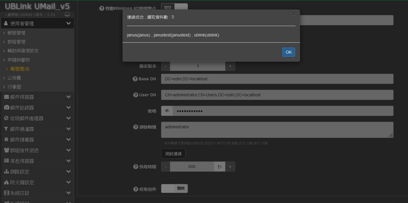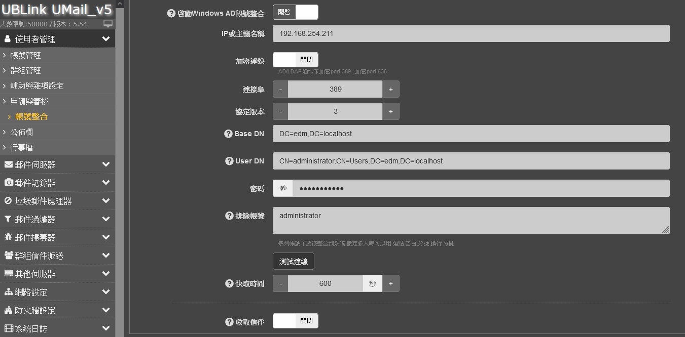 首先必須設定好下列的各項設定 , 並以連線測試完成確認後 , 在以下幾個場景下可以自動建立帳號