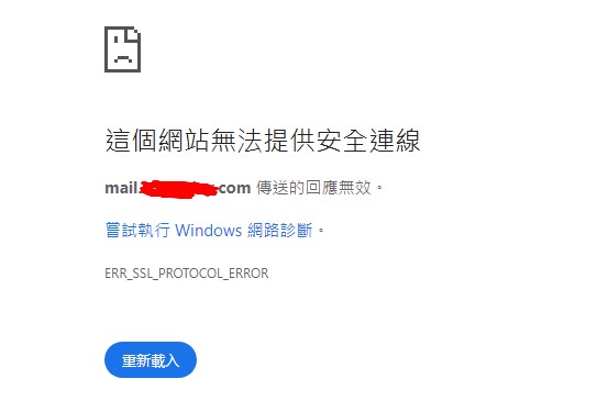 這個網站無法提供安全連線mail.test1.ublink.org 傳送的回應無效。
