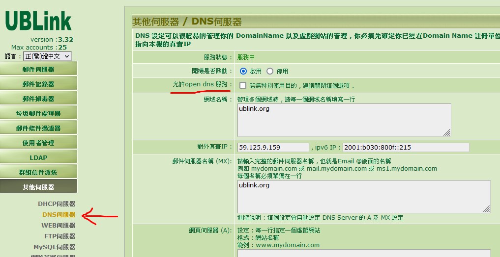 允許open dns 服務 : 若無特別使用目的 , 建議關閉這個選項 .